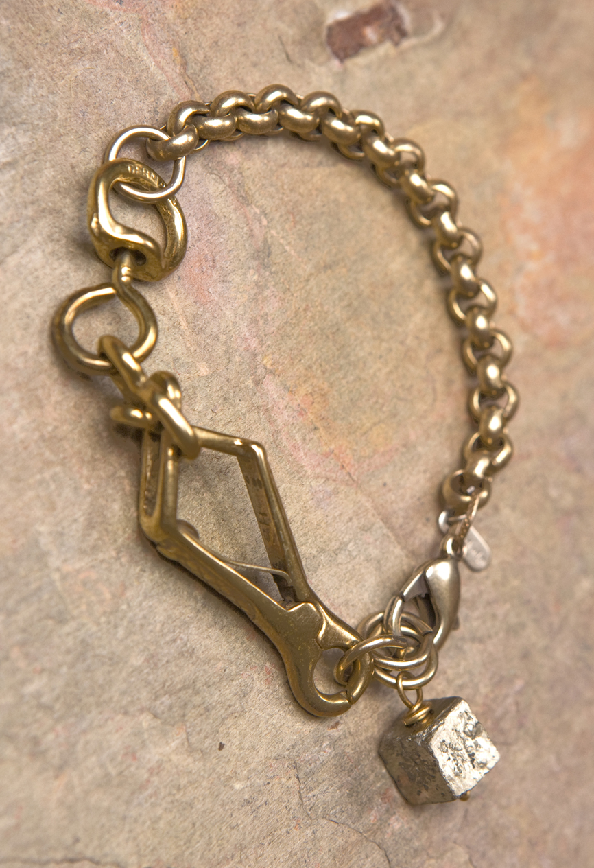 Vintage Military Clasp / Heavy Brass Chain / Pyrite / 8.5" Adjustable Length
