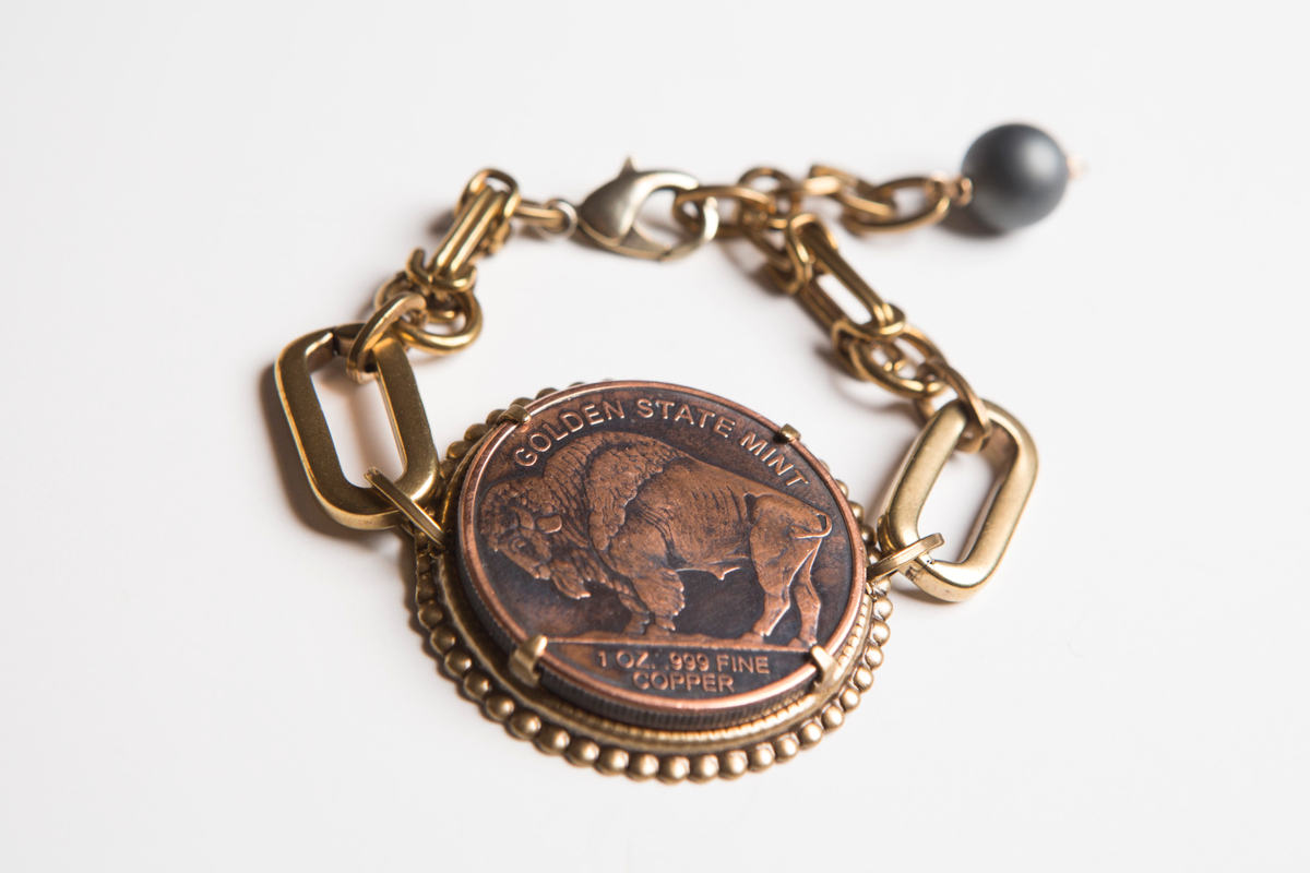 1 oz. Copper Buffalo Coin Plated Gold Chain 7-8.5" Length Plus 13" Necklace Extender Chain