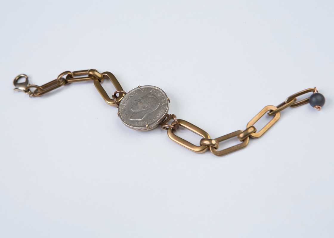Antique Great Britain Solid Silver Florin George VI Coin / Brass Chain/ 7-8.5" Length, Extender Included
