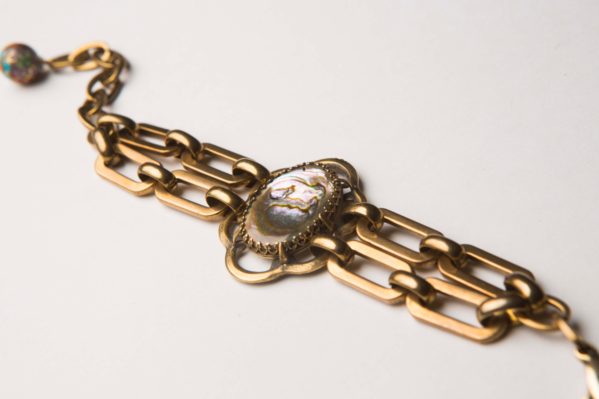 Abalone Cabochon / Heavy Brass Chain 6-8.5 Adjustable Length / Necklace Extender Included