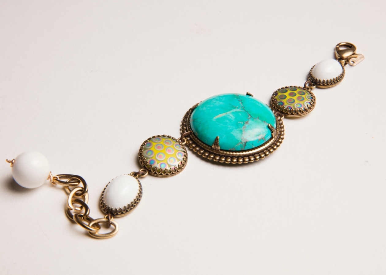 Vintage White / Turquoise / Matte Yellow 7-8.5" Length / Necklace Extender Incl.