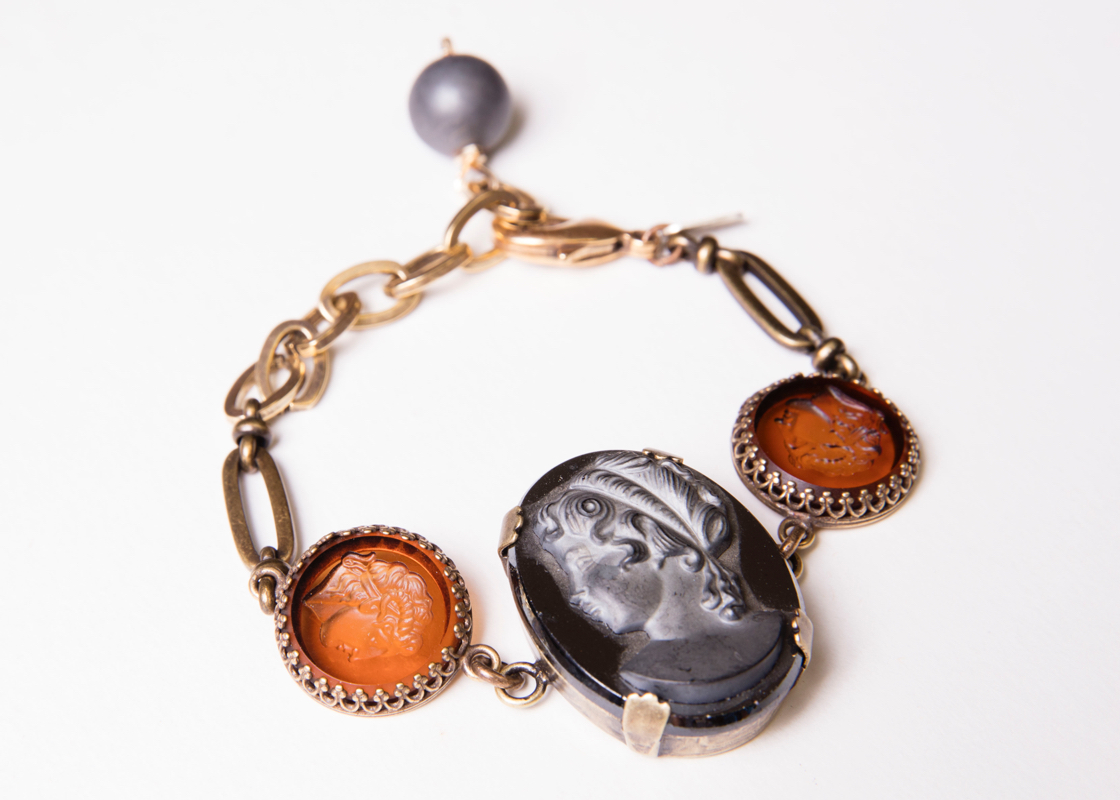 Vintage Hematite Cameo & Amber Warrior Intaglios / 6-8" L / Neck Extender Incl.
