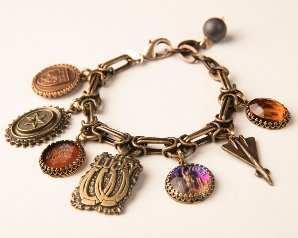Mixed Vintage Charm Bracelet / Brass Ox Chain/ 7-9" Adj. Length / Neck Extender