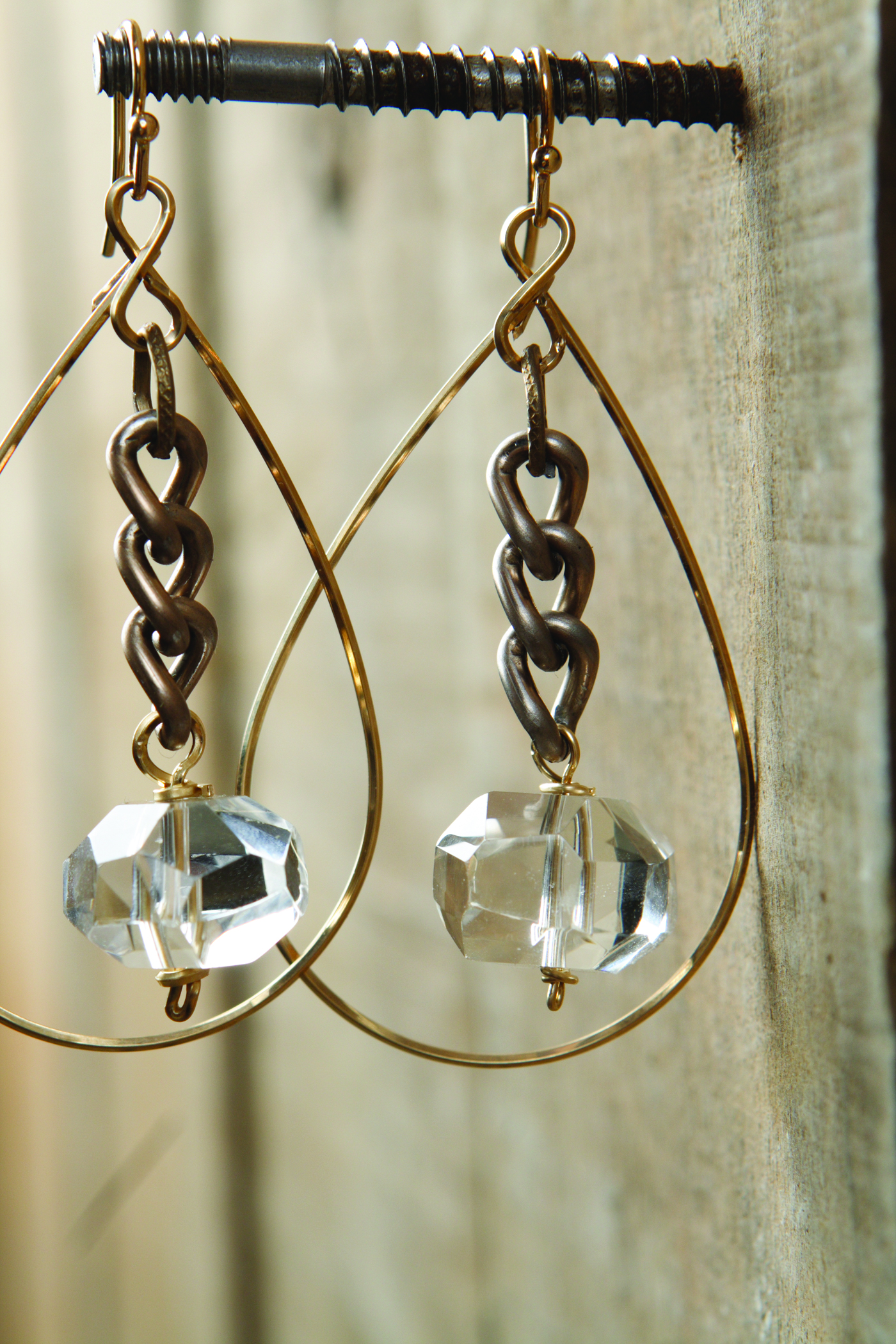 Rock Crystal Large Teardrop / Vintage Chain 14kt. G.F. French Wire / 2.5" Length