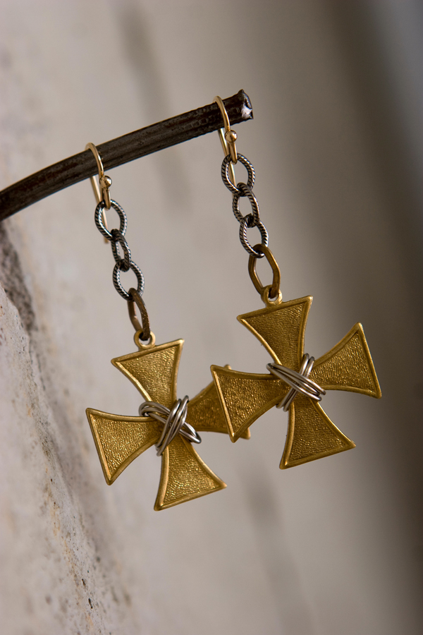 Wrapped Bronze Maltese Cross / Vintage Chain / 14kt. G.F. French Wire / 2 1/4" Length