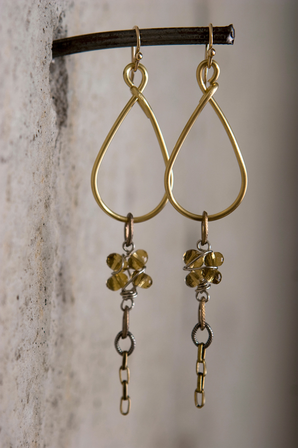 Whiskey Citrine / Vintage Chain / Bronze Wire/ 14kt. G.F. French Wire / 4" Length