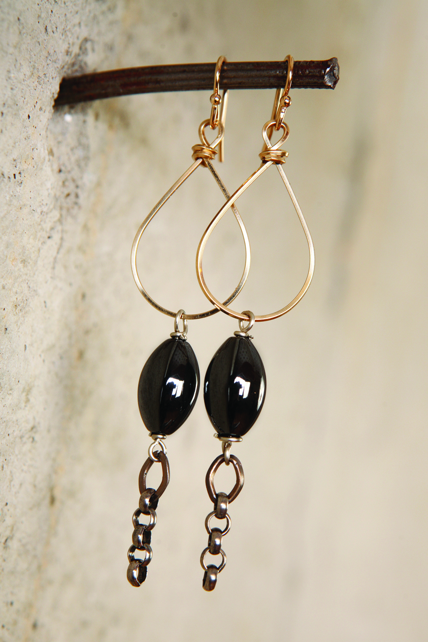 Hematite Drop / Vintage Chain / 3 1/2" Length / 14kt. G.F. French Wires