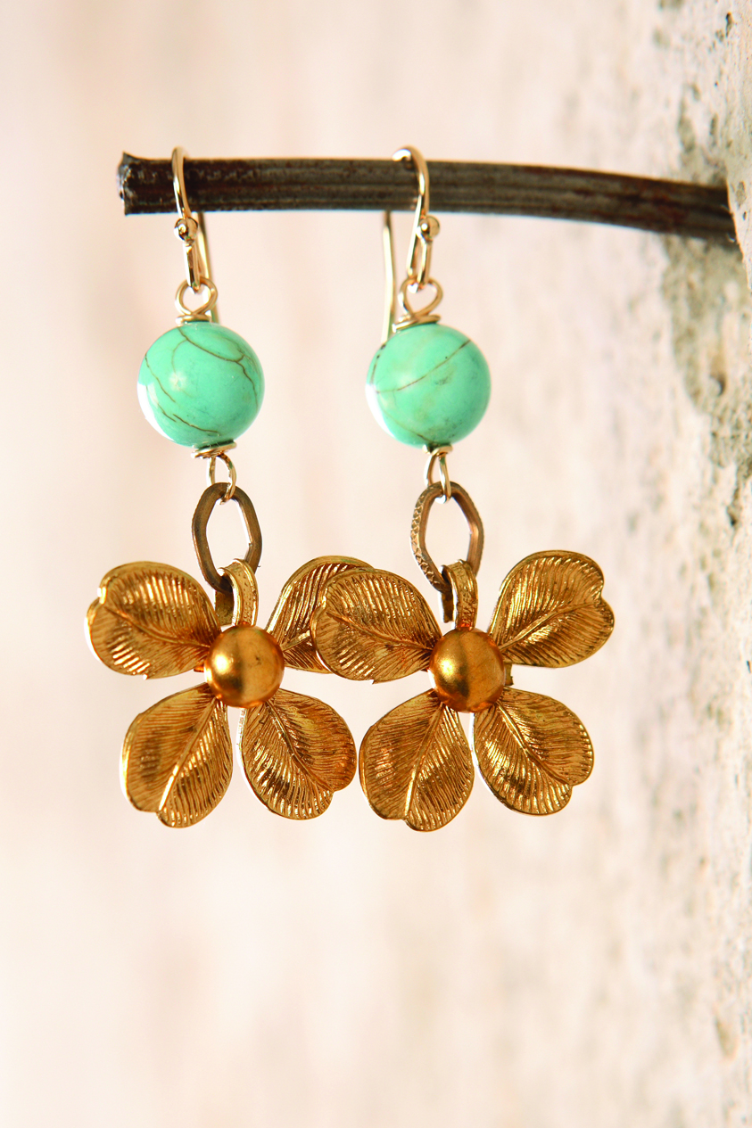 Recycled Flower / Turquoise / Vintage Chain / 2" Length / 2" Length / 14kt. G.F.