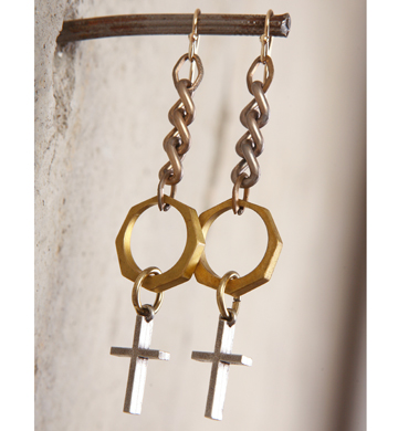 Vintage Recycled Brass Hex Ring & Cross