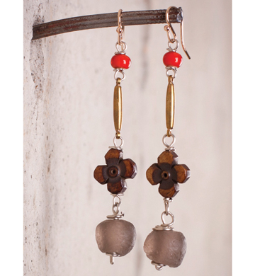 Recycled Glass African Beads / Bronze 14kt. G.F. French Wires/ 3" Length.