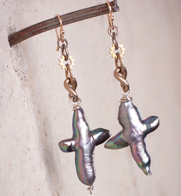Fresh Water Pearl Cross/Vintage Chain 14kt. G.F. French Wires/3"Length