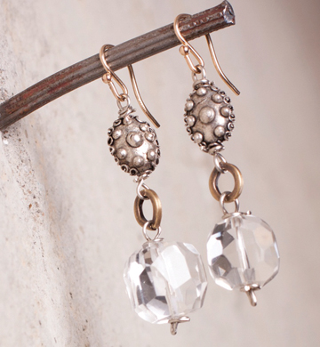 Faceted Rock Crystal / Cloisonne / 14kt G.F. French Wires / 2" Length