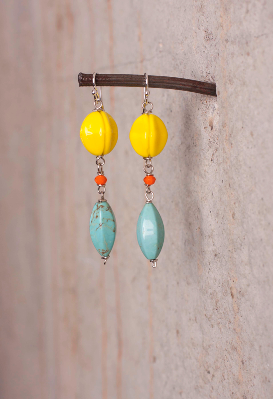 Vintage Czech Bead / Turquoise & Orange Quartz