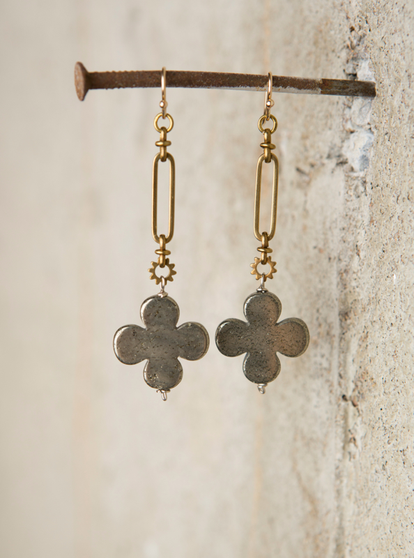 Pyrite Clover & Gear Part / 3" Length / 14kt. G.F. French Wires