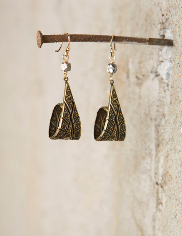 Brass Etched Stamping / Faceted Square Pyrite / 2" Length / 14kt. G.F. French Wires