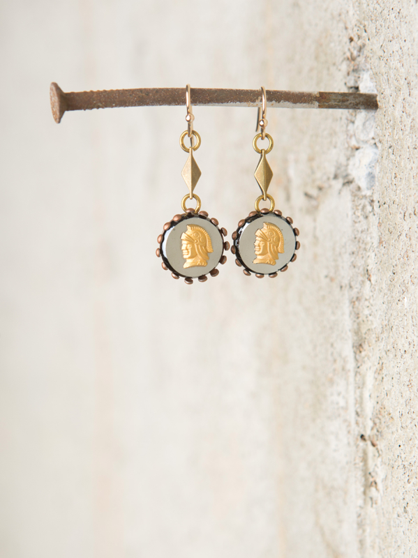 Vintage & Recycled Topaz Cameo / Bronze Setting / 1.5" Length / 14kt. G.F. French Wires