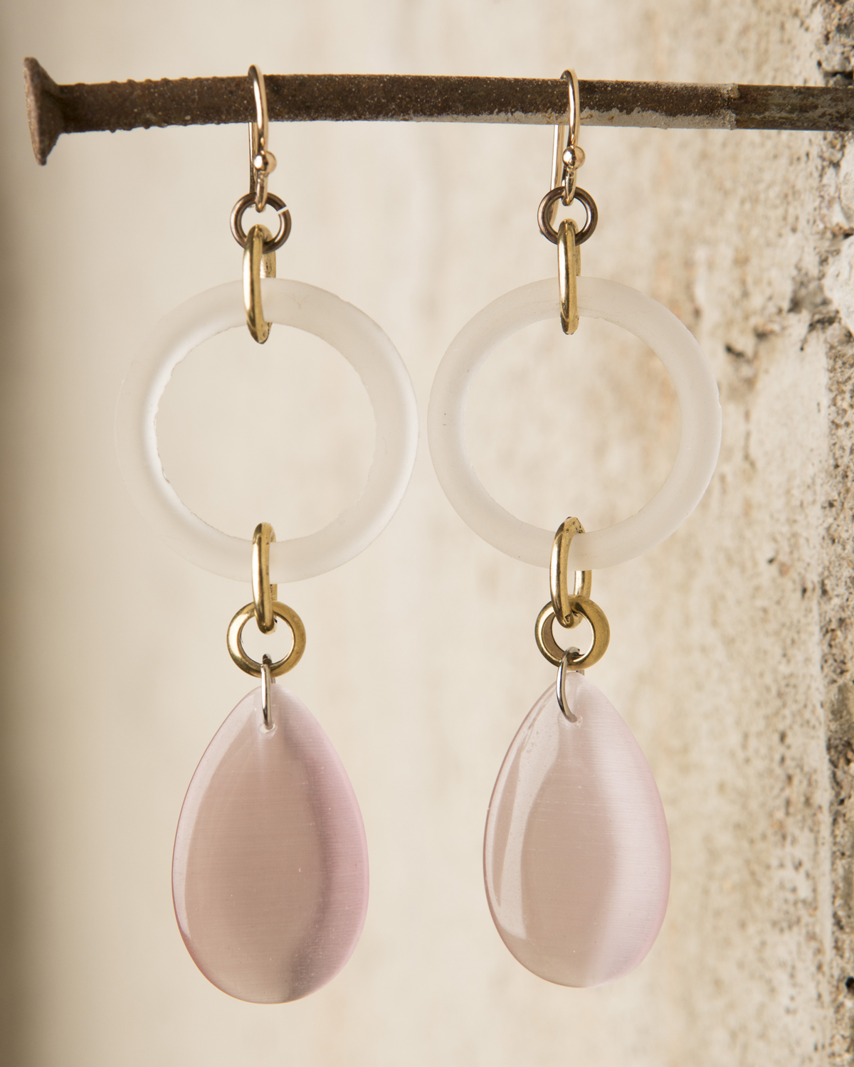 Vintage Frosted Circular Ring / Pink Cats Eye