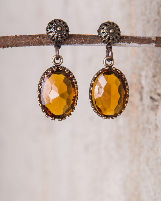 Vintage Faceted Topaz Crystal / Brass & Bronze Elements / Brass Earring Top with Stainless Steel Post / 1" Length
