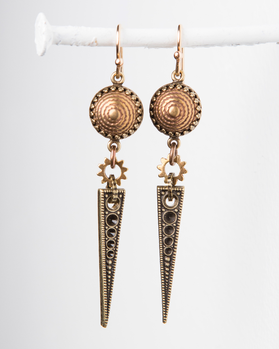 Metal Cabochon / Bronze Spike / 2.5" Length / 14kt. G.F. French Wires