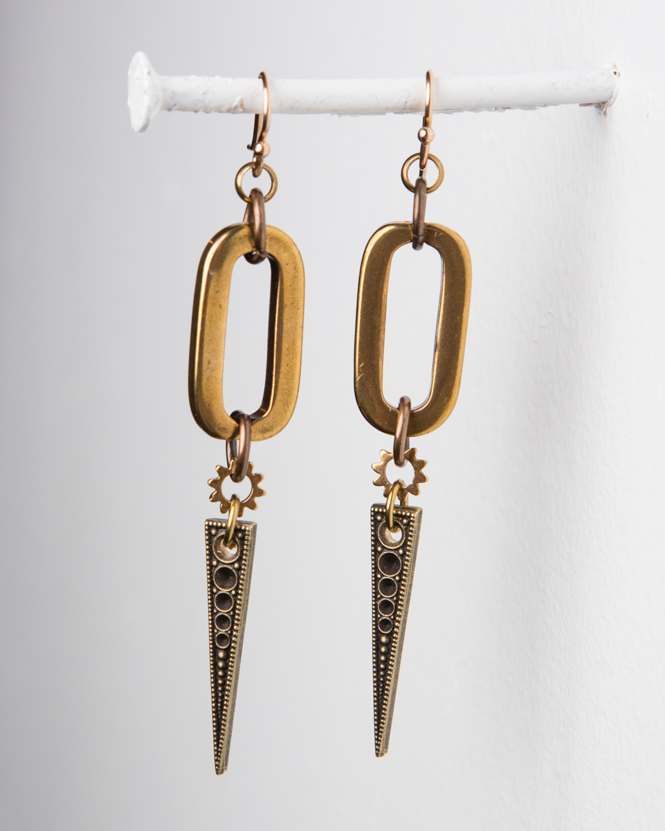 Heavy Brass Chain Link / Bronze Spike / 3" Length / 14kt. G.F. French Wires