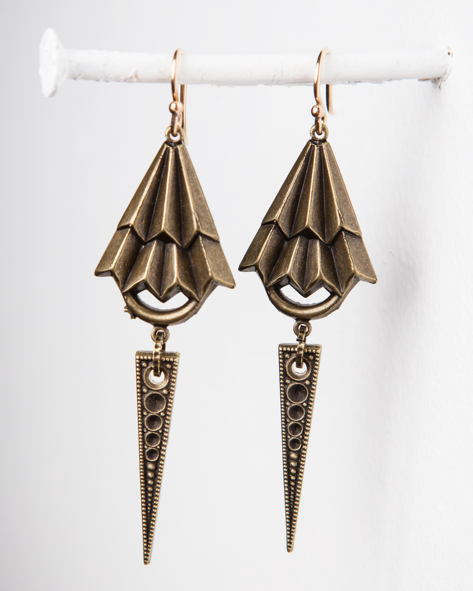 Deco Finding / Bronze Spike / 2 3/4" Length / 14kt. G.F. French Wires
