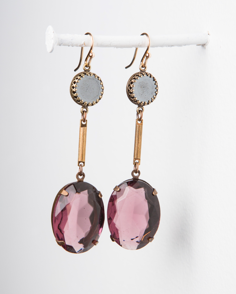 Vintage Faceted Amethyst / Hematite 2 3/4" Length / 14kt. G.F. French Wires