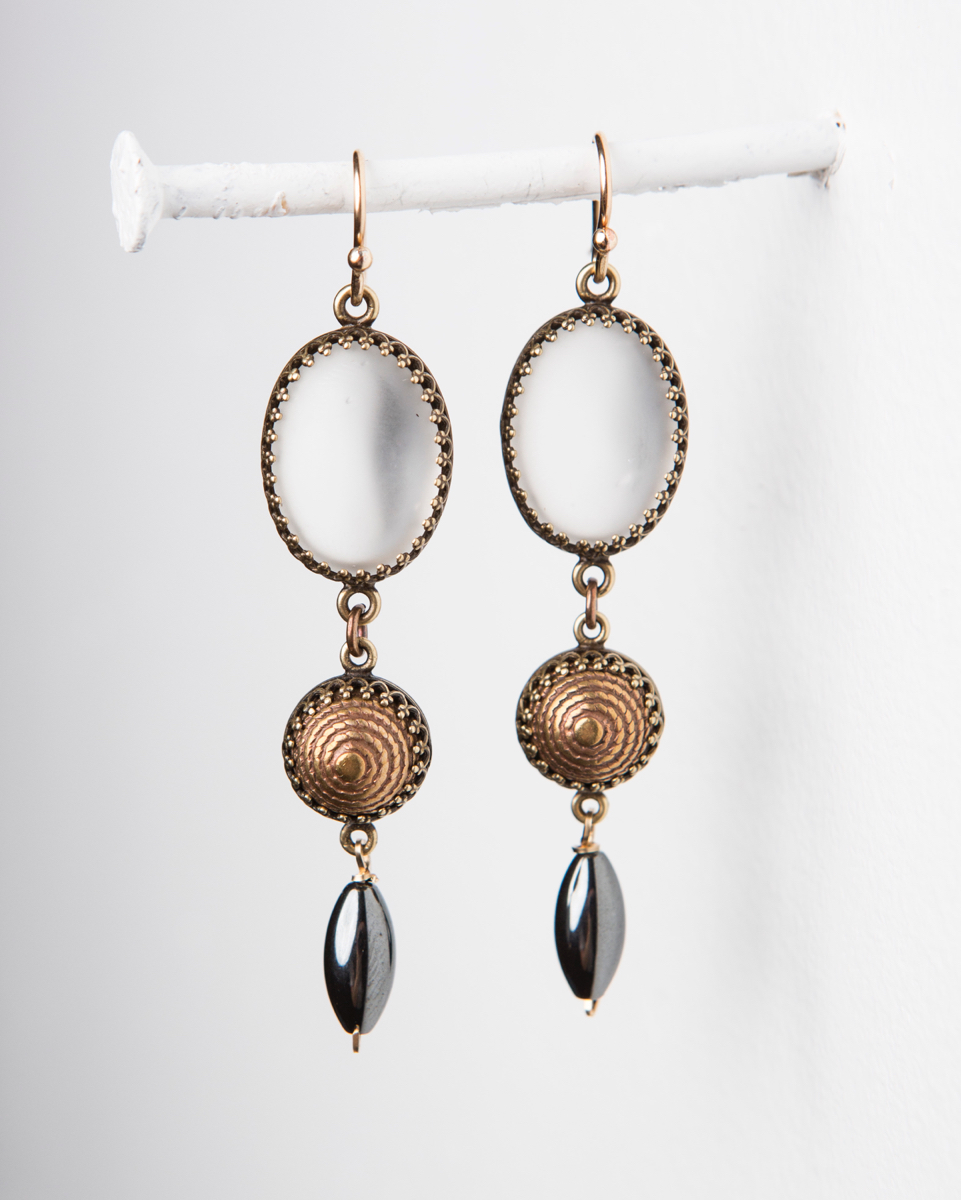 Vintage Matte Crystal Cabochon / Hematite / 2.5" Length / 14kt. G.F. French Wires