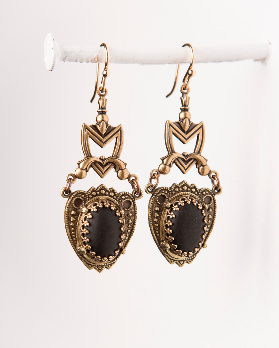 Brushed Black Onyx / Brass Stampings 2" Length / 14kt. G.F. French Wires