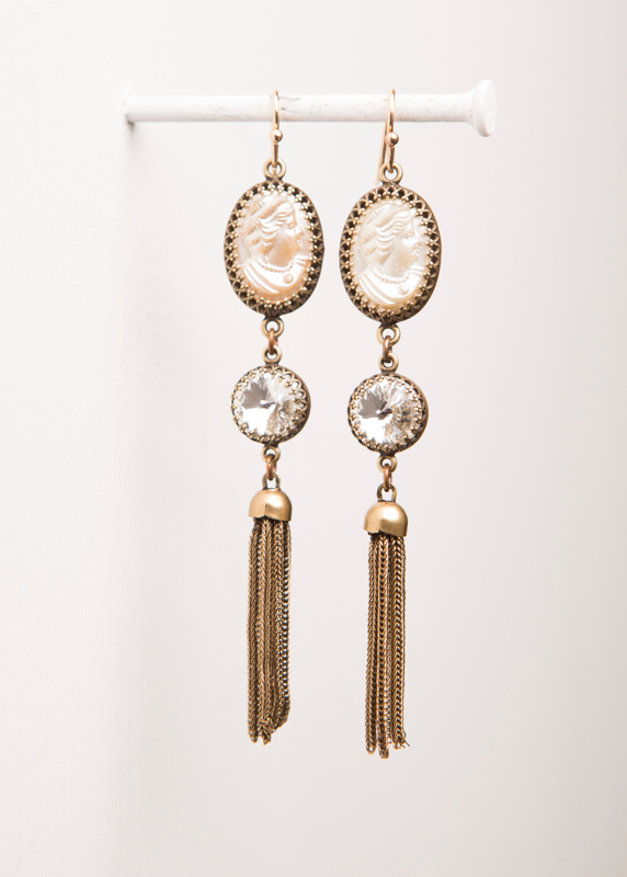 Vintage Bohemian Glass Pearl Austrian Crystal Brass Tassel 14kt. G.F. French Wires 3 1/2" Length