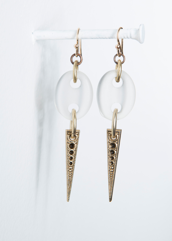 Frosted Crystal Cabochon / Plated Gold Spike / 2.5" Length / 14kt. G.F. French Wires