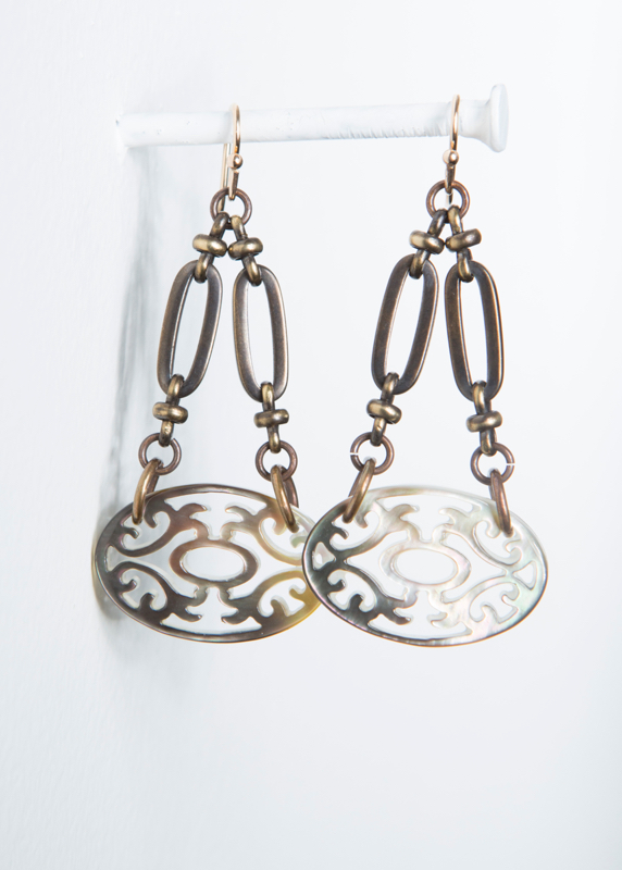 Shell Cabochon / Brass Ox Chain / 2 1/4" Length / 14kt. G.F. French Wires