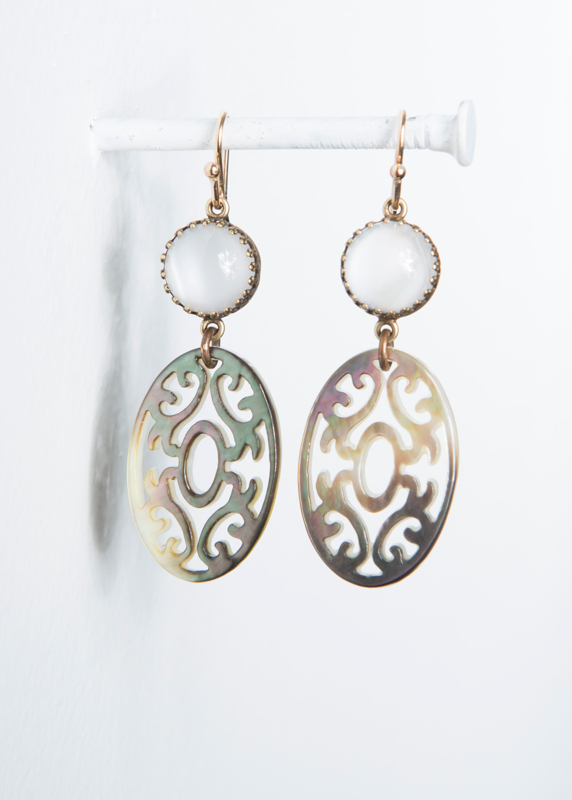 Vintage Moonstone / Shell Cabochon / 2" Length / 14kt. G.F. French Wires