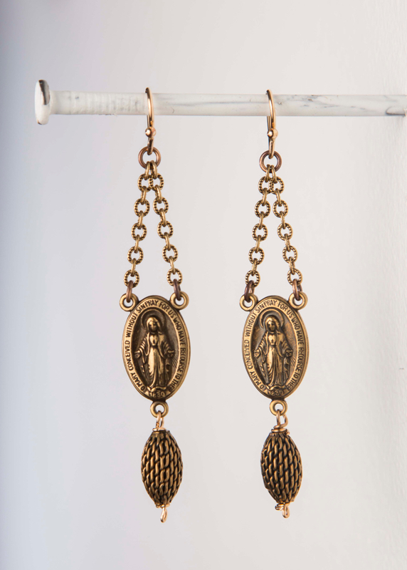 St. Christopher Charm / Brass Mesh / 3" Length / 14kt. G.F. French Wires