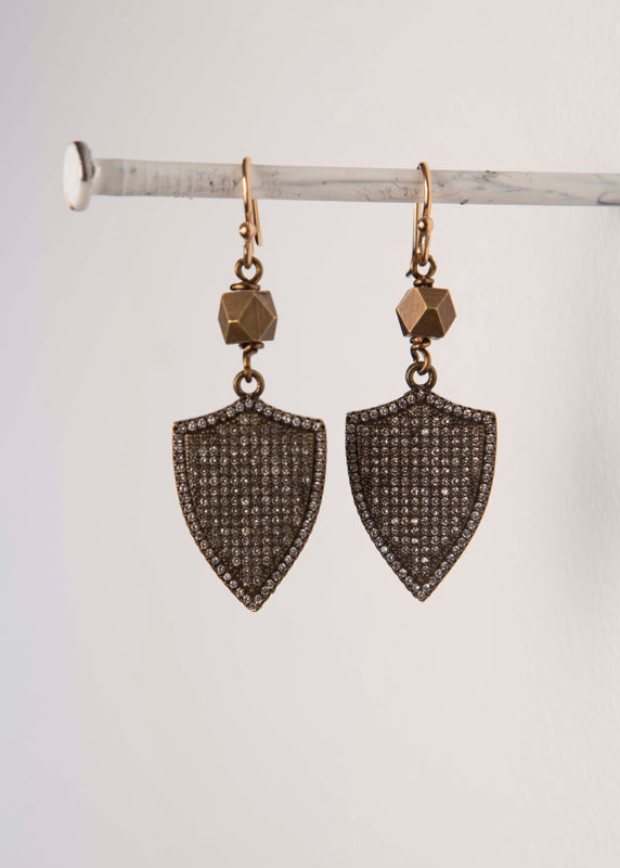 Plated Bronze Pave CZ Shield / 1 3/4" Length / 14kt. G.F. French Wires