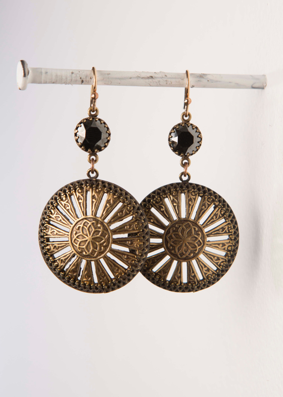 Textured Spoke Cabochon / Hematite Crystal / 2" Length / 14kt. G.F. French Wires