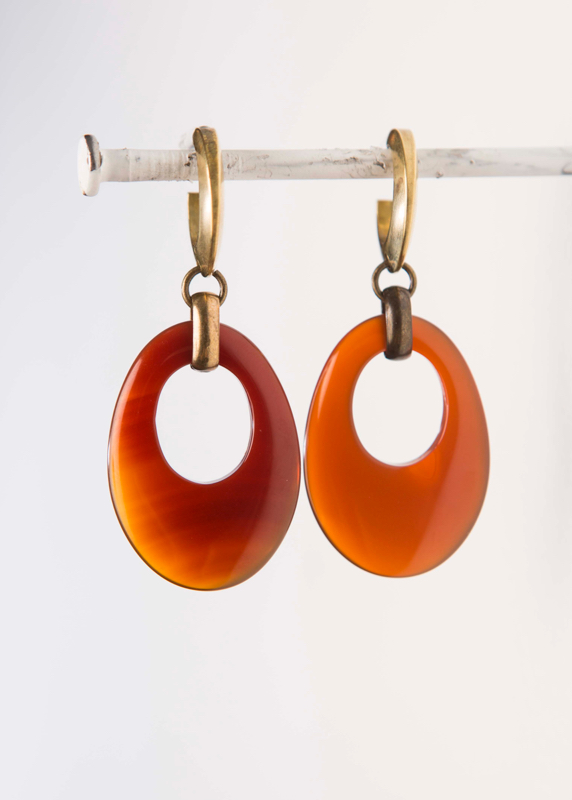 Vintage Carnelian & Brass Hoop / 2" Length / 14kt. G.F. French Wires