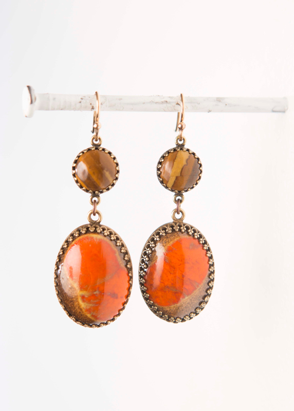 Iron Zebra Jasper / Vintage Orange Cabochon / 2" Length / 14kt. G.F. French Wires
