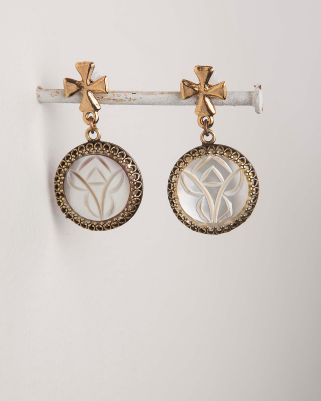 Vintage Carved Mother of Pearl / 1 1/4" Length Cross Top Post