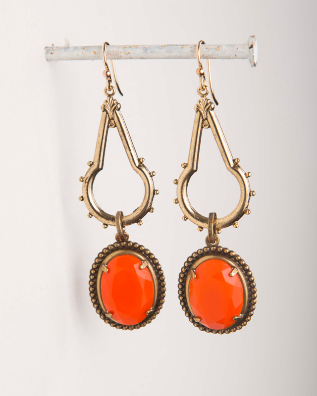 Spike Teardrop / Faceted Orange Cabochon / 2 3/4" Length / 14kt. Gold Finish French Wires