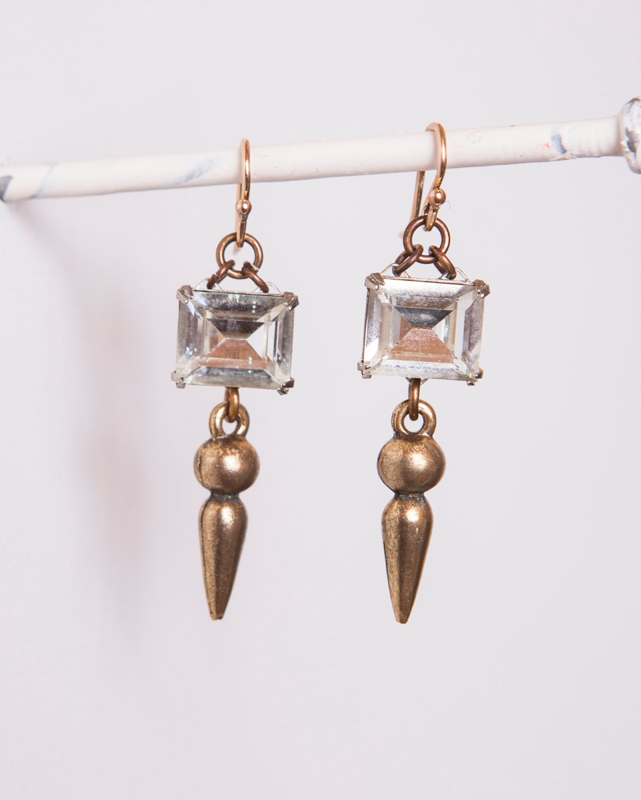 Vintage Emerald Cut Crystal / Plated Gold Drop 2" Length / 14kt. G.F. French Wires