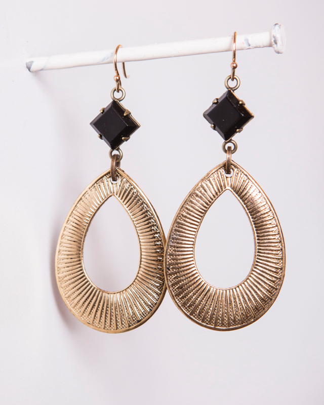 Vintage Jet Crystal / 24kt. Plated Gold Teardrop 3" Length / 14kt. G.F. French Wires