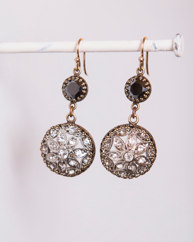 Vintage Crystal Buttons / Austrian Hematite Stones 1 3/4" Length / 14kt. G.F. French Wires