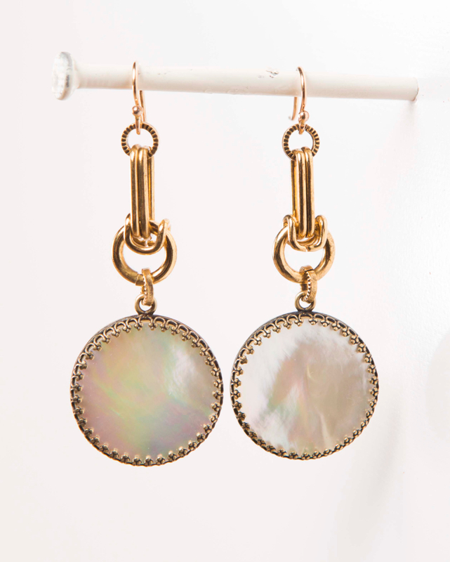 MOP Cabochon / Plated Gold Chain 2.5" Length / 14kt. G.F. French Wires