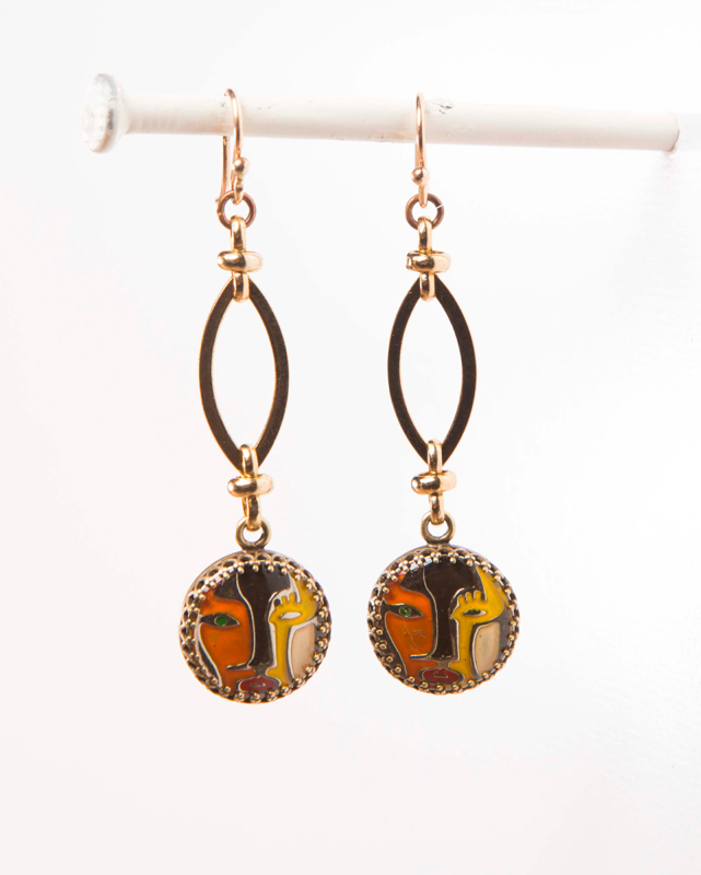 Vintage Picassoesque Button / Plated Gold Chain 2 1/4" Length / 14kt. G.F. French Wires