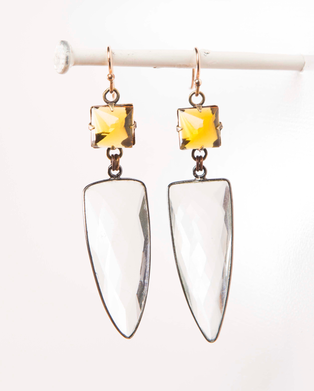 Vintage Topaz Cabochon / Faceted Glass Arrowhead 2.5" Length / 14kt. G.F. French Wires