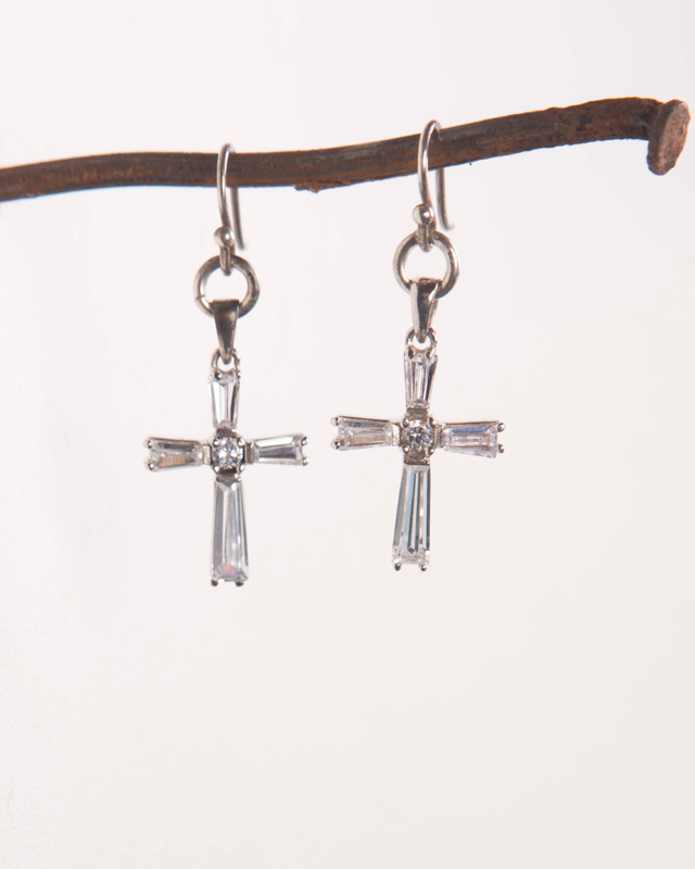 Sterling Silver CZ Cross & Ear Wires / 1.5" Length