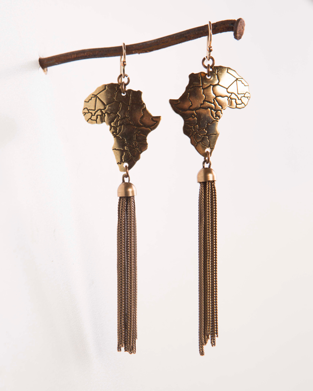 African Continent Tassel Drop Earrings 4" Length / 14kt. G.F. French Wires