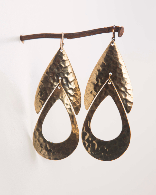 Hammered Brass Dangle Earrings 3" Length / 14kt. G.F. French Wires