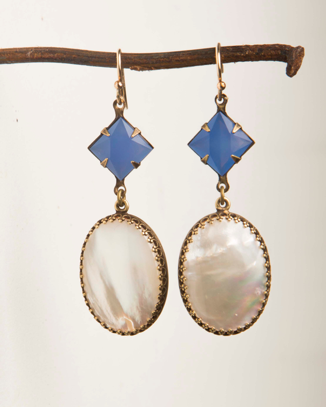 MOP / Vintage Periwinkle Cabochon 2" Length / 14kt. G.F. French Wires