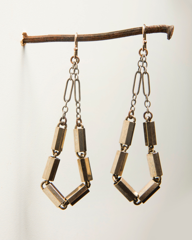 Sterling Silver Chain / Plated Gold Hex 3" L / 14kt. G.F. French Wires